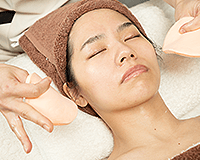 最後に美容成分をたっぷり配合したミルクを顔に浸透させていきます。ほてった肌を落ち着かせ、つやのあるしっとりとした肌に仕上げていきます。